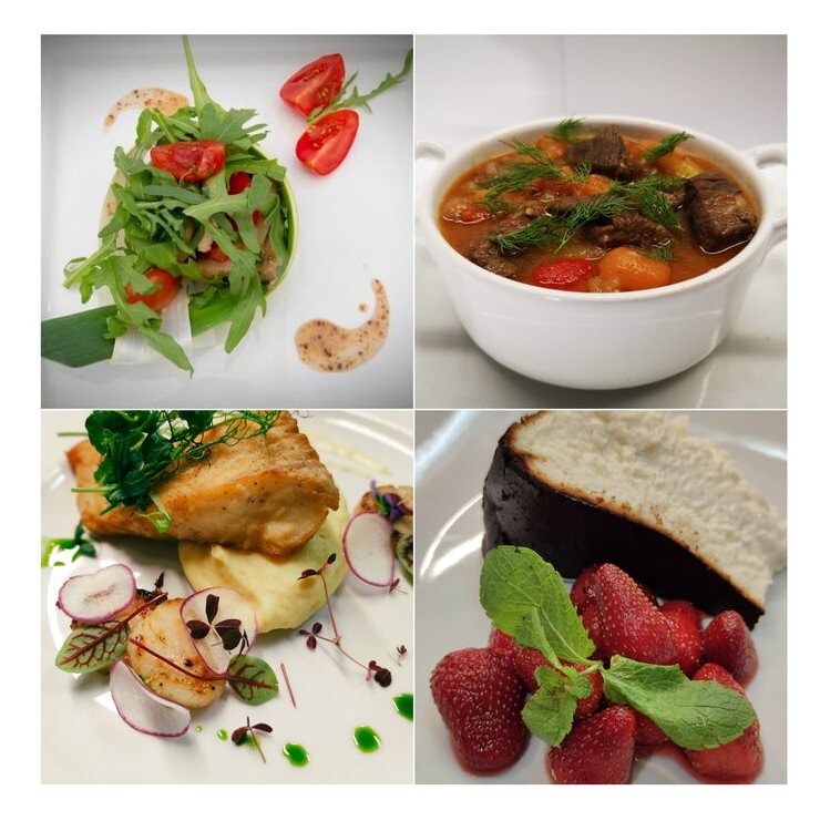 В качестве основного блюда подают мясо, рыбу или морепродукты. В завершении ужина - изумительно вкусный десерт.